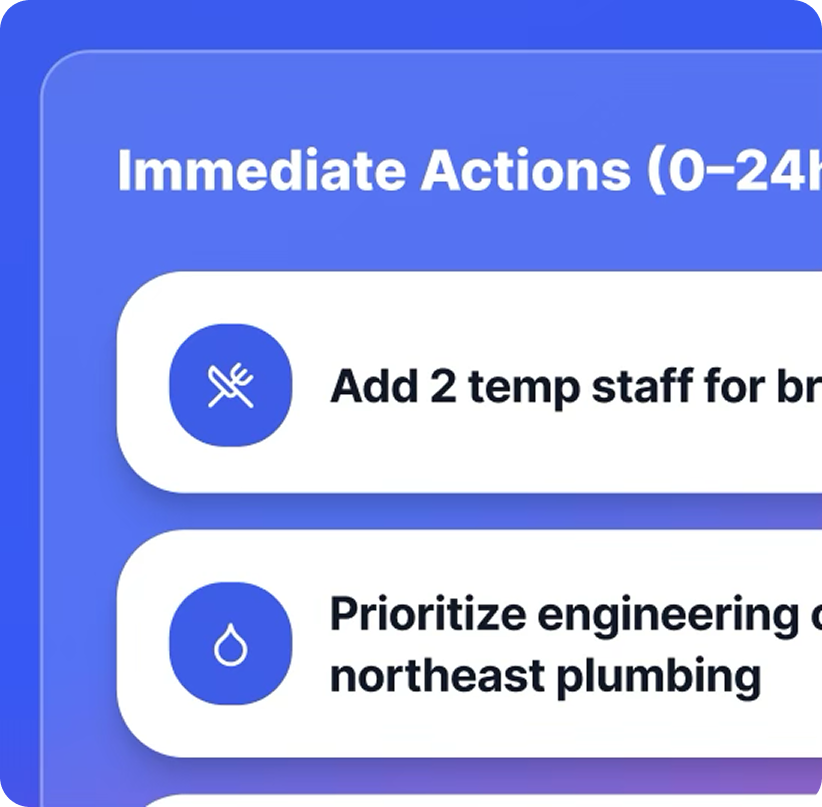 We predict dissatisfaction during the stay, alert the right person, and suggest human recovery steps that protect ratings and revenue.